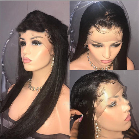 Front Lace Wig European And American Style Wig Women's Long Straight Hair Black Mid-length Synthetic Wigs 134 Lace Wig Head Cover